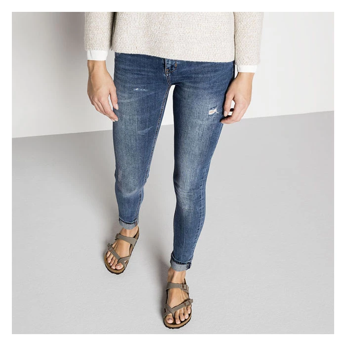 The Birkenstock Women’s Mayari Birkibuc Casual Sandals Stone are effortlessly grand with a criss cross forming single loop. The Mayari are elegantly functional with ultimate support, a deep heel cup, a spacious toe box, and adjustability for all of your vibrant days.