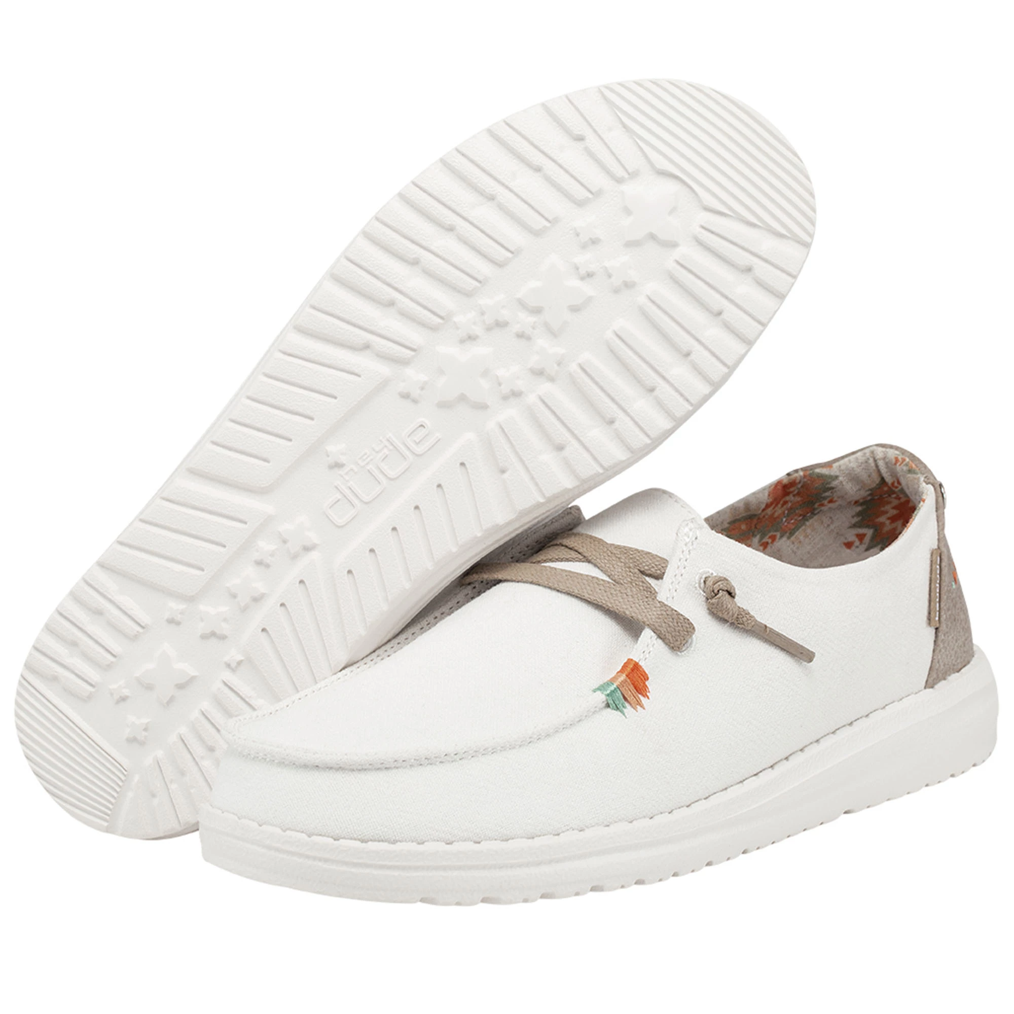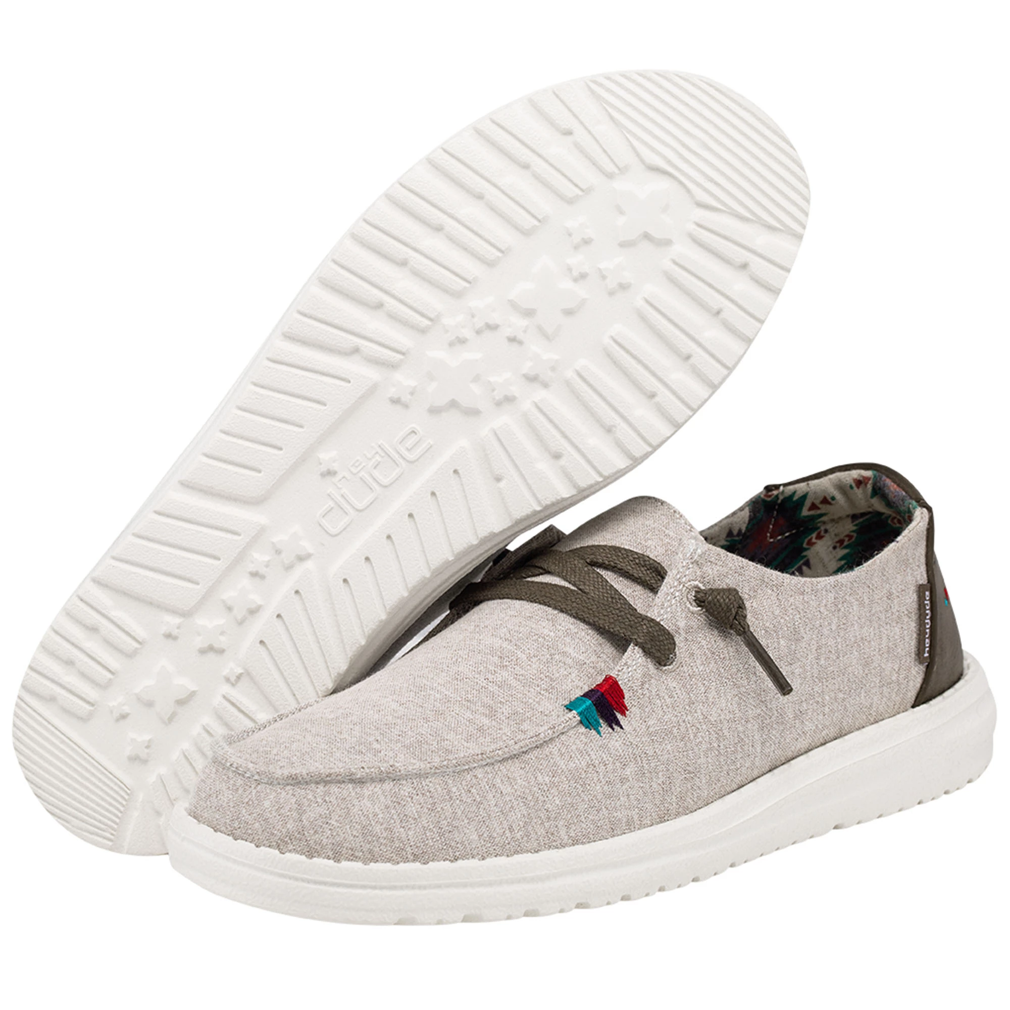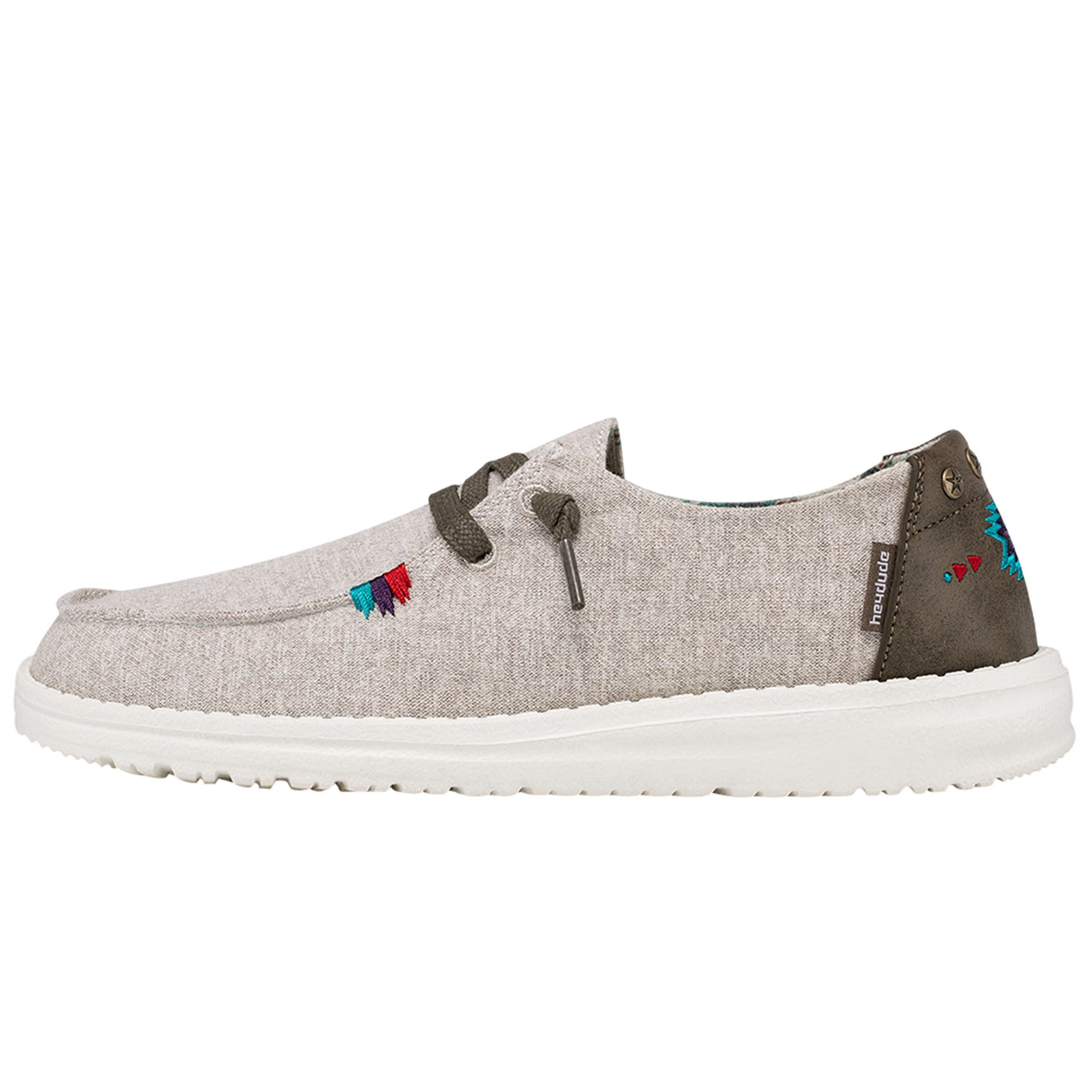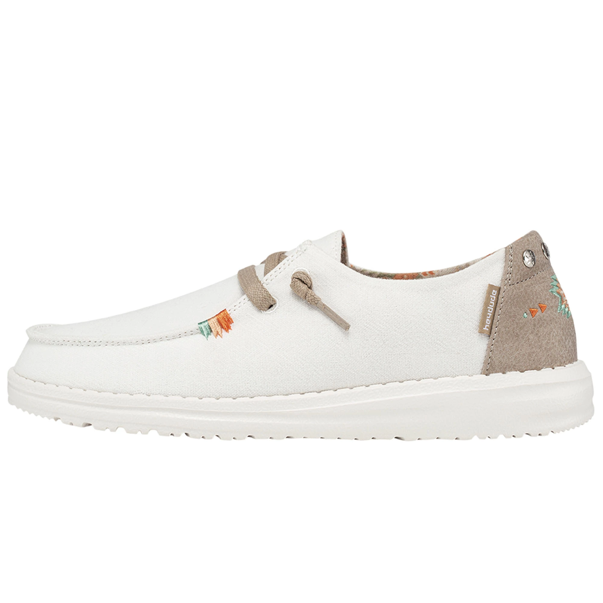 The Hey Dude Women’s Wendy Rodeo Casual Shoes combine washed cotton materials with crochet embroidery and hand-stitched details. They feature contrasting textures and hand-stitching at the heel with an Easy-On elastic lacing system and patented UltraLIGHT EVA outsole to keep them comfy. Be festival ready with the Hey Dude Women’s Wendy Rodeo Casual Shoes.