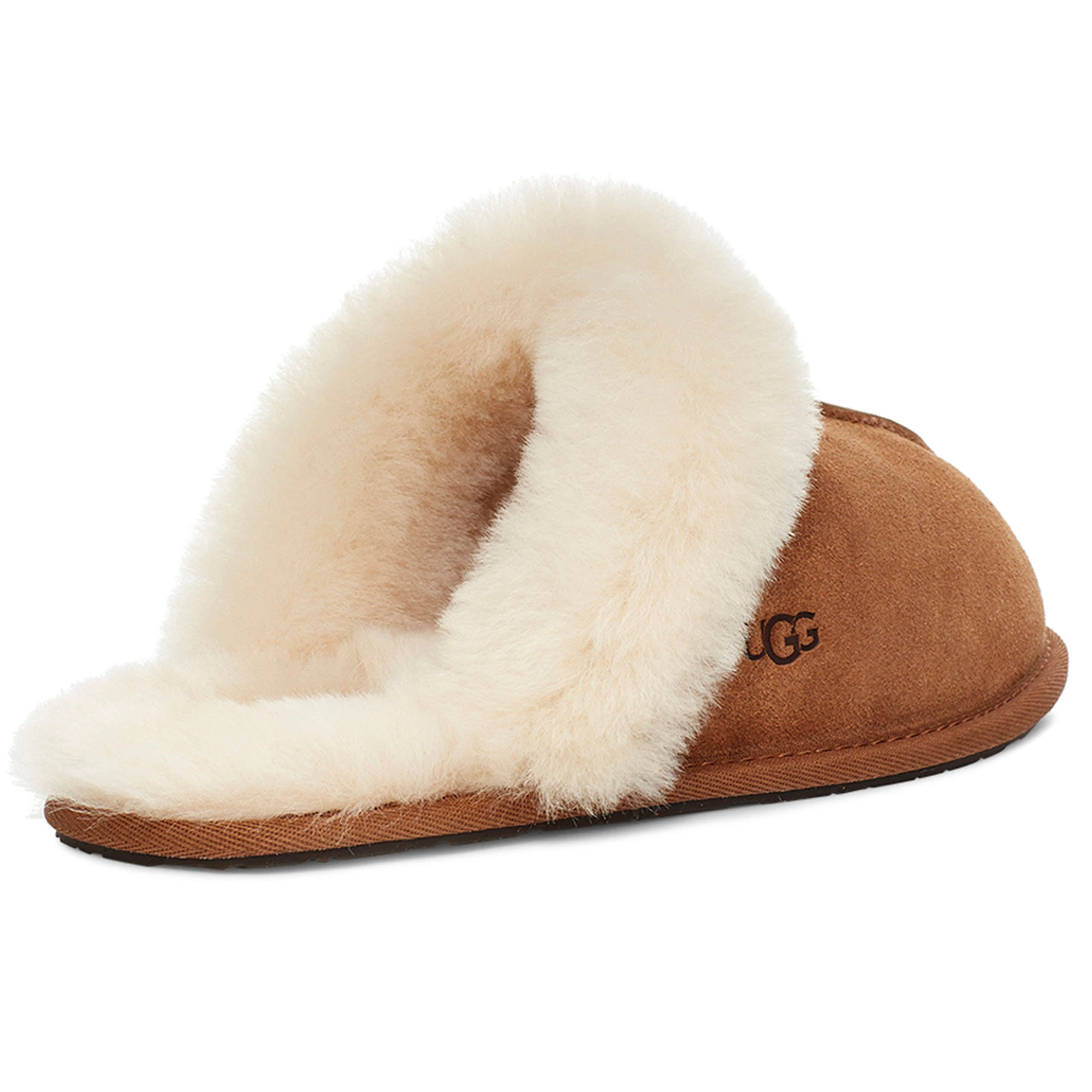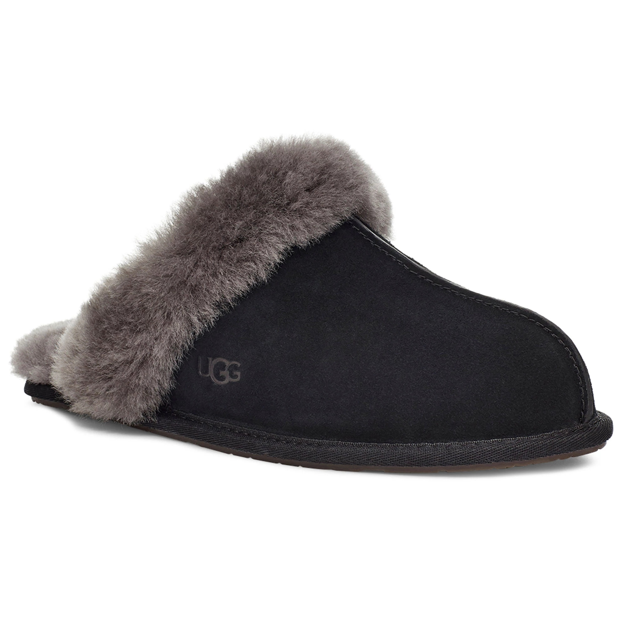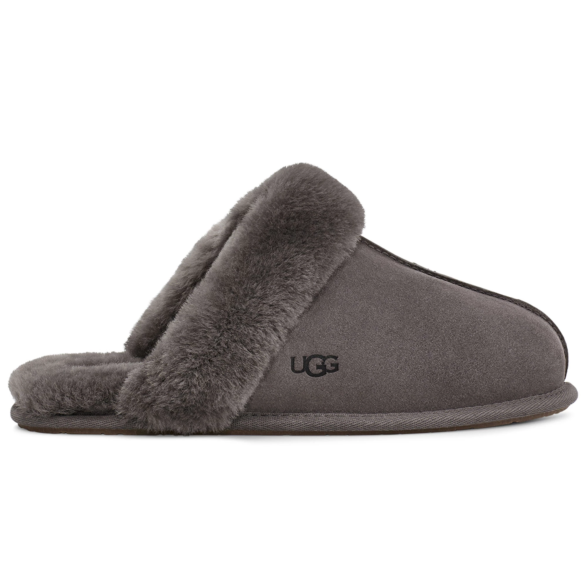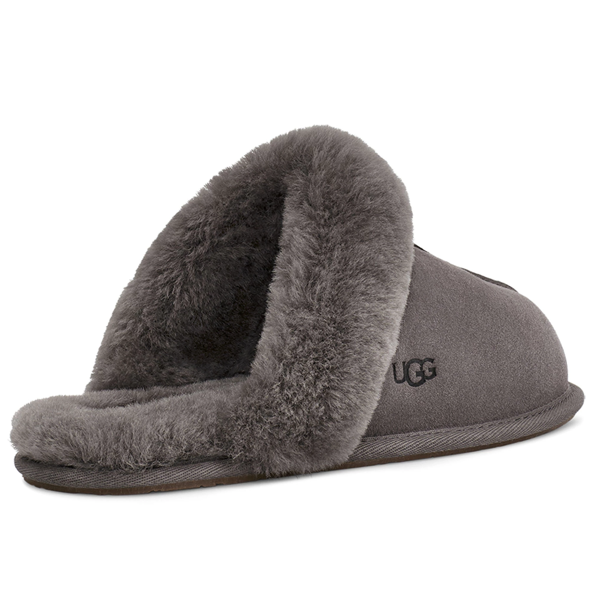 The UGG Women’s Scuffette II Slippers are cast in soft suede and the brands’ signature sheepskin. These essential house slippers feature a fluffy collar and are finished with a molded rubber sole. The UGG Women’s Scuffette II Slippers pair with your favorite cozy robe or matching cashmere set for maximal leisure.
