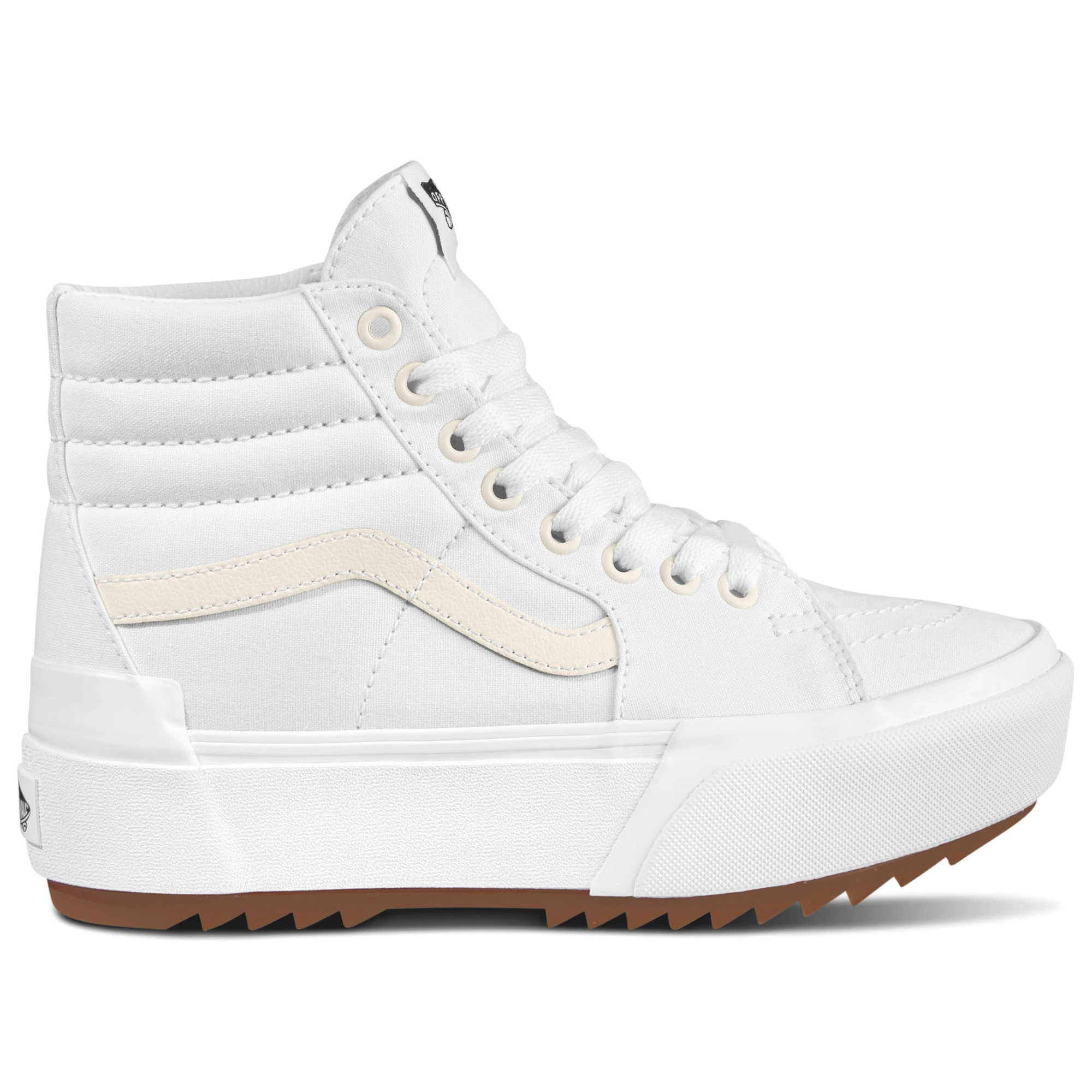 The Vans Women’s Canvas Sk8-Hi Stacked Casual Shoes takes the legendary high-top style to a whole new level. Highlighting oversized features and unexpected layers like platform bumpers, exaggerated outsoles, and translucent foxing tape, these elevated platform shoes update an iconic favorite while maintaining all of the original Vans DNA, including the iconic side stripe.